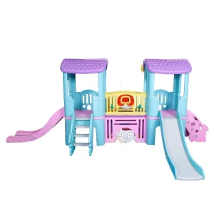 Pink & Turquoise Jungle Gym With Hoop and Soccer Net