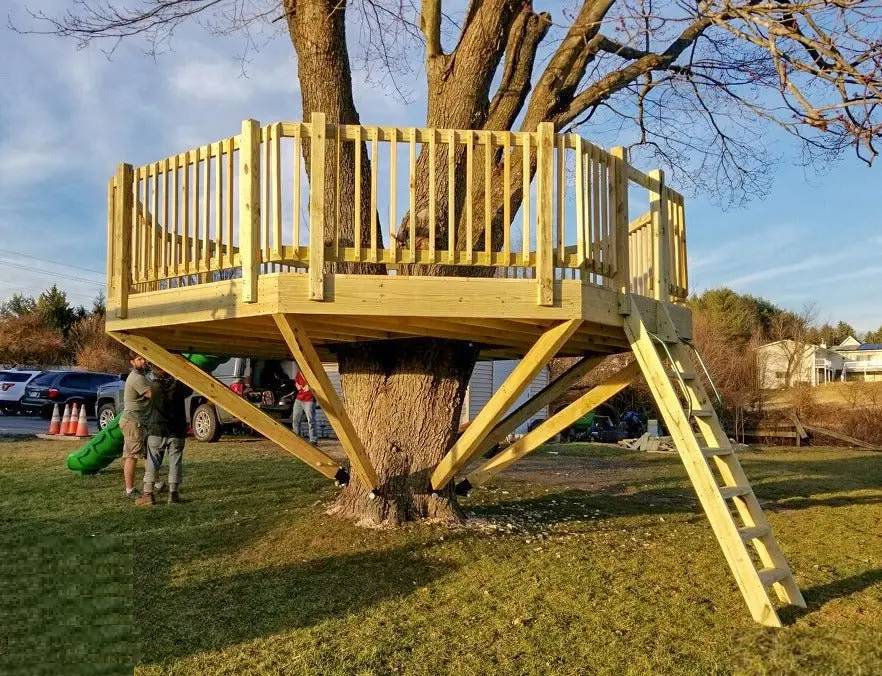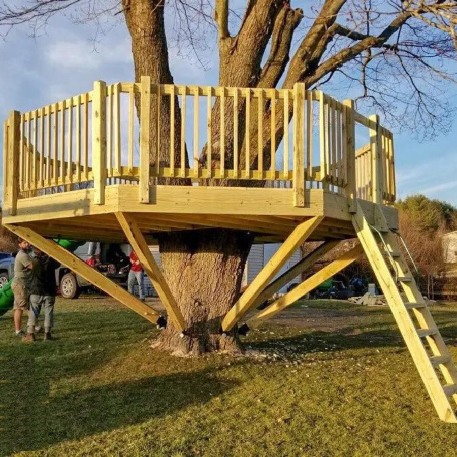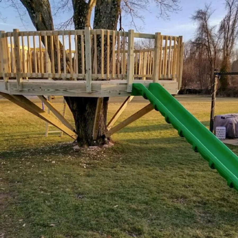 Looking for a treehouse that has the perfect 360° view of the trees around you? Then the Treehouse Platform – Model One is an ideal build for you. Pictured here is our Octagon Treehouse Platform model. Wed loved the wrap-around effect this deck had on the tree it surrounded. Our customers added a slide to the platform’s excitement along with the ladder. Looking for other treehouse platforms similar to this build? Head over to our product range to see the work we’ve done for our clients and what we can do for you!